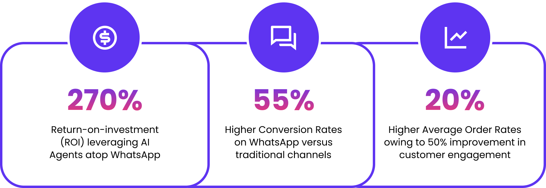 Among survey respondents in retail and e-commerce, 90% of their organizations saw improved ROAS with WhatsApp.12 These respondents reported that ads that click to WhatsApp had a 64% improvement in ROAS compared to legacy ads.
